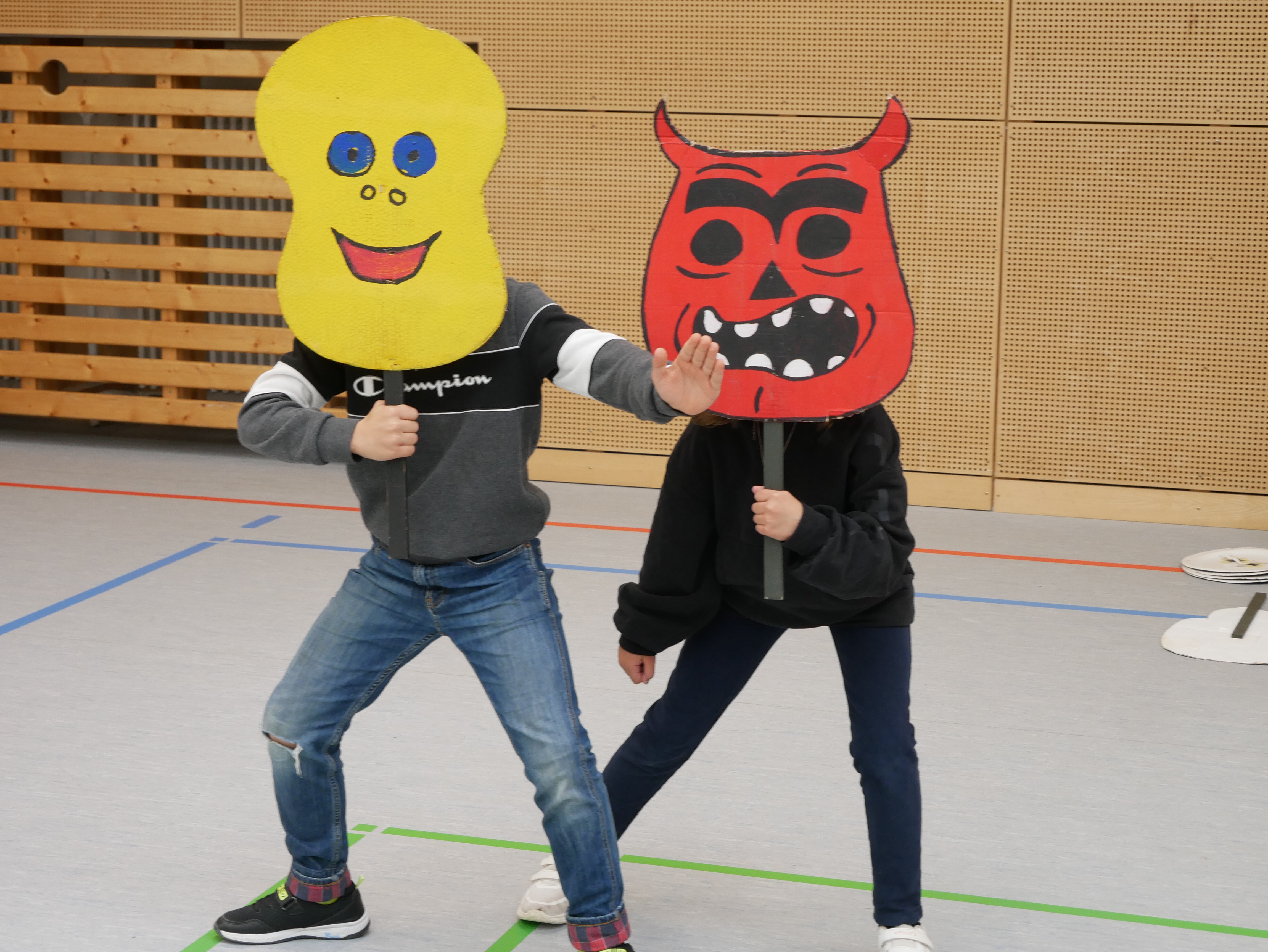 Die Klasse war die gesamte Zeit über gebannt und hat wahnsinnig viele theatrale Mittel mitgenommen und gelernt. Frau Czisch hat mit Einfühlungsvermögen viele neue und schon bekannte Theaterübungen umgesetzt und dabei immer die Übungen dem schon bekannten Leistungsniveau der Gruppe angepasst.